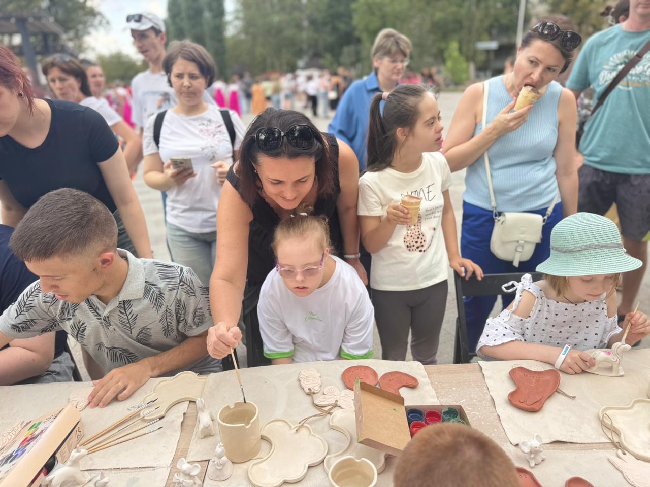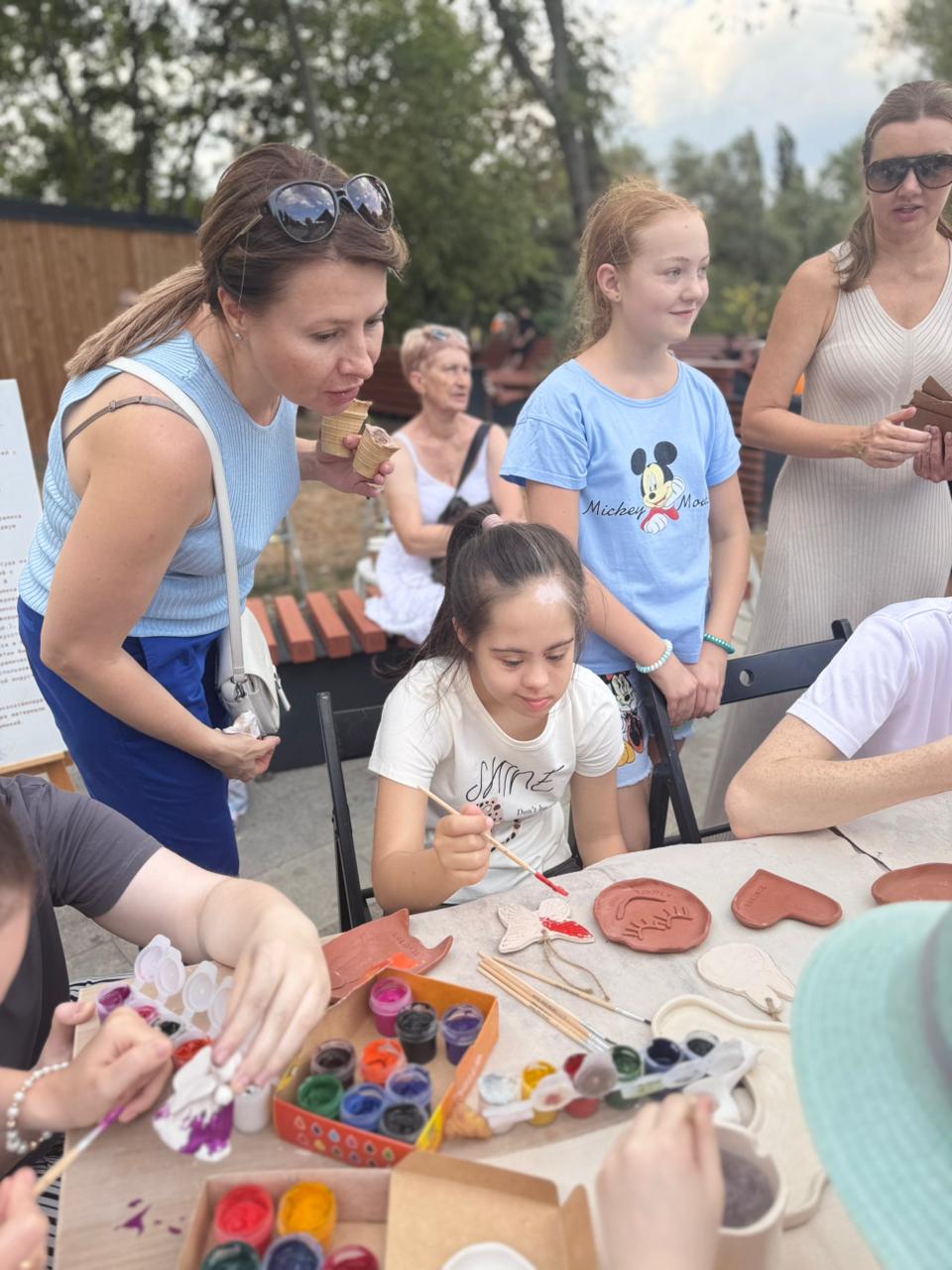 Так, непосредственными участниками активностей стали и ребята из «Города особенного детства»: воспитанники хореографического кружка для детей с ОВЗ «В ритме танца» и кружка ДПИ «Мастерская творчества» для детей с ОВЗ. Вместе со своими наставниками - Дариной Свинцицкой и Тамарой Саввиной - они пробуют свои силы по росписи на керамике, лепке из глины, рисованию. Участников второго дня фестиваля развлекают ростовые куклы, их угощают мороженым и сладкой ватой.