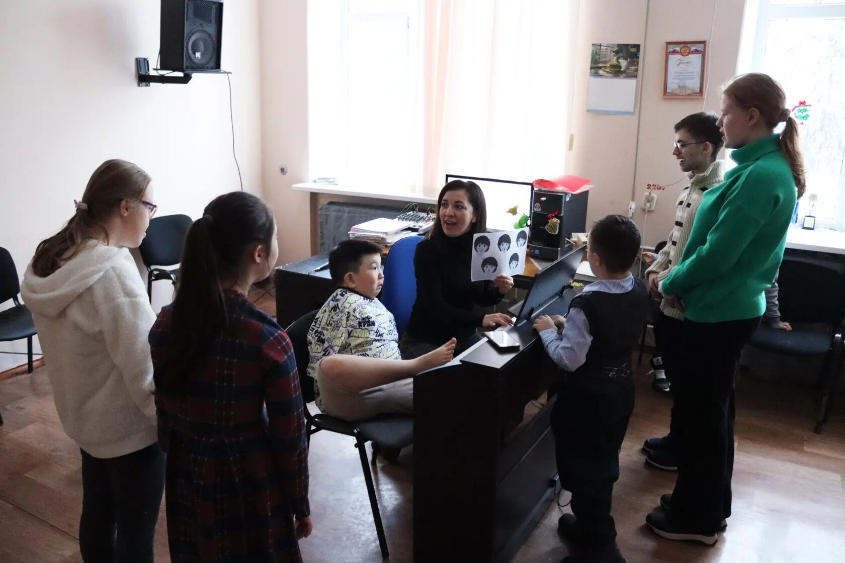 Сегодня первое занятие в новом году прошло у Софьи Зекерьяевой. Софья Павловна вместе с воспитанниками провела артикуляционную и дыхательную гимнастику, простукивание для развития чувства ритма (с использованием музыкальных инструментов), распевание на разные слоги и попробовала исполнить песенки короткой продолжительности.