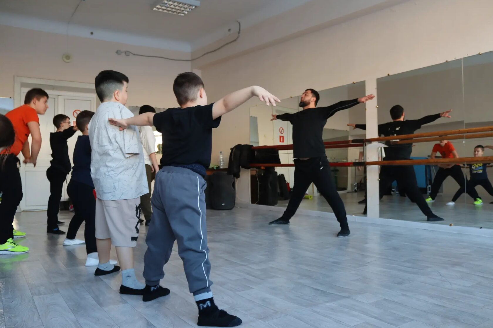Сегодня, несмотря на возникший коллапс с электроснабжением, педагог хореографического кружка «В ритме танца» Курман Амирович Янгазиев провел первое в этом году занятие. Он провел разминку, вспомнил с ребятами разученные до нового года движения.